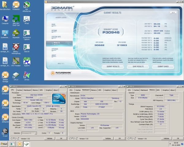 Schaut man sich den Takt von "nur" 5,25 GHz an, so kann man zu dem Schluss kommen, dass Platz 1 (31.073 Punkte, gehalten von unserem geschätzten Kollegen Stummerwinter) durchaus machbar gewesen wäre. Aber wie gesagt, aufgrund einiger "Tests" wurde das System kurz nach diesem Ergebnis außer Betrieb genommen.