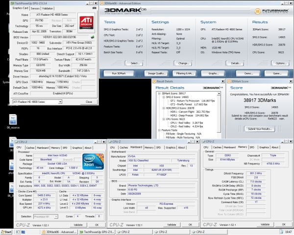 Während es bei Stuwi relativ gut lief und er innerhalb kurzer Zeit den 1M-Rekord für i7-Prozessoren erzielte, wollte unser System nicht starten. Unser Classified begrüßte uns mit Postcode FF, sodass wir erstmal wieder alles auseinandernehmen durften. Nach erneutem Aufsetzen des Kühlers lief das System wie von Geisterhand wieder und wir konnten endlich loslegen. Gleich im ersten Run konnten wir unseren Weltrekord im 3DMark06 um fast 200 Punkte verbessern: