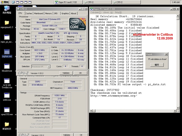 Weitere Tests brachten eine Zeit von 6,688 Sekunden auf den Bildschirm, doch leider gab es beim Starten von CPU-Z dann einen Bluescreen. Die Wiederholung dieser Zeit gelang nicht, auch wenn masterchorch vehement forderte, dass Boris doch endlich mit dem Übertakten anfangen solle.