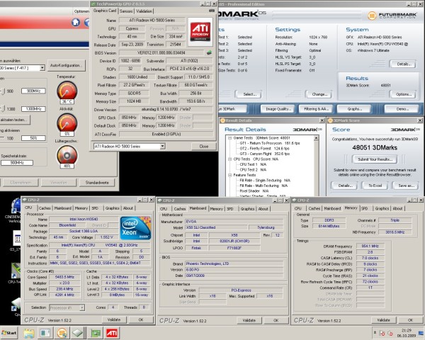 Für richtig gute Ergebnisse im 3DMark05, 3DMark06 und Aquamark sind natürlich die Uncore-Werte viel zu niedrig. Primär lag das Ziel aber beim Austesten der Karten, weshalb wir UCLK noch nicht gepusht haben. Aber es handelt sich ja erst um den Anfang, weitere Tests werden folgen....