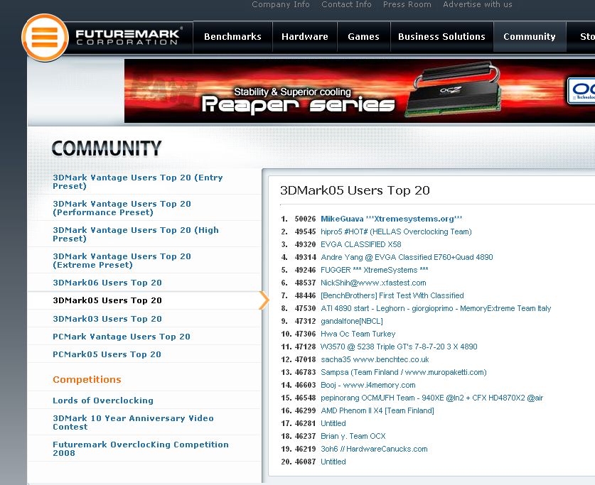 Mit gesteigerter Effizienz (durch bessere Timings sowie höheren Uncore-Takt) lassen sich die Ergebnisse der ersten Bench-Session dieses Systems sicher noch verbessern - um in der Hall of Fame von Futuremark weiter nach oben zu kommen. Derzeit sieht es offiziell so aus: