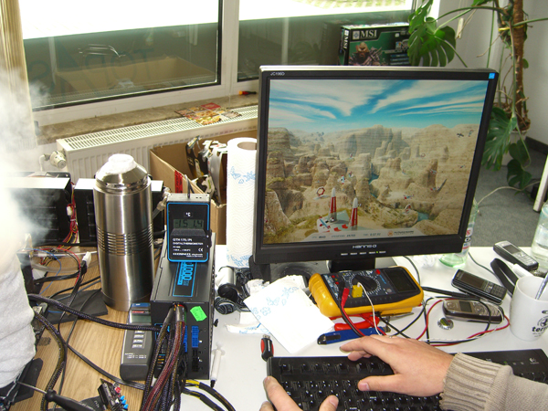 Freitag, 11. September 2009. Gegen 15 Uhr steigt die Nervorsität. Ist alles vorbereitet? Haben wir an alles gedacht? Denn schließlich gibt es solch ein Event nicht alle Tage. Stummerwinter und Sof, beide wohlbekannte Overclocker aus Deutschland, hatten unsere Einladung zu einer gemeinsamen Overclocking-Session angenommen. Bereits seit über einem Jahr stand diese Idee im Raum, jetzt endlich konnten wir sie in die Tat umsetzen. Während wir vor Ort alles für den Einsatz von drei Systemen vorbereiteten, uns um die Lieferung von rund 100 Litern flüssigen Stickstoffs sowie das leibliche Wohl kümmerten, hatte stummerwinter eine lange Reise vor sich. Per Flugzeug nach Berlin und von dort aus im Konvoi mit masterchorch und SoF nach Cottbus - kein billiges Vergnügen. Umso mehr hat es uns gefreut, dass er es einrichten konnte.